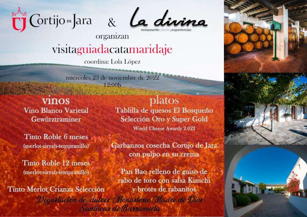 Recientemente hemos tenido la oportunidad de visitar las Bodegas Cortijo de Jara, que ya visitamos en 2015 y nos apetecía volver. Tras ponerme de acuerdo con Antonio Galindo, del restaurante La Divina de El Bosque, nos pusimos manos a la obra y logramos organizar la visita que fue acompañada con un maridaje de algunos vinos de esta bodega y algunos platos que aportó Antonio. Nos acompañaron amigos blogueros y no blogueros, como Aprendiendo a cocinar, Come en casa, Cocinando al potopó, Cuarto y mitá, Grupo Gastronómico El Almirez, Come en casa y El huerto de tía Lou, con ellos pasamos un día estupendo.