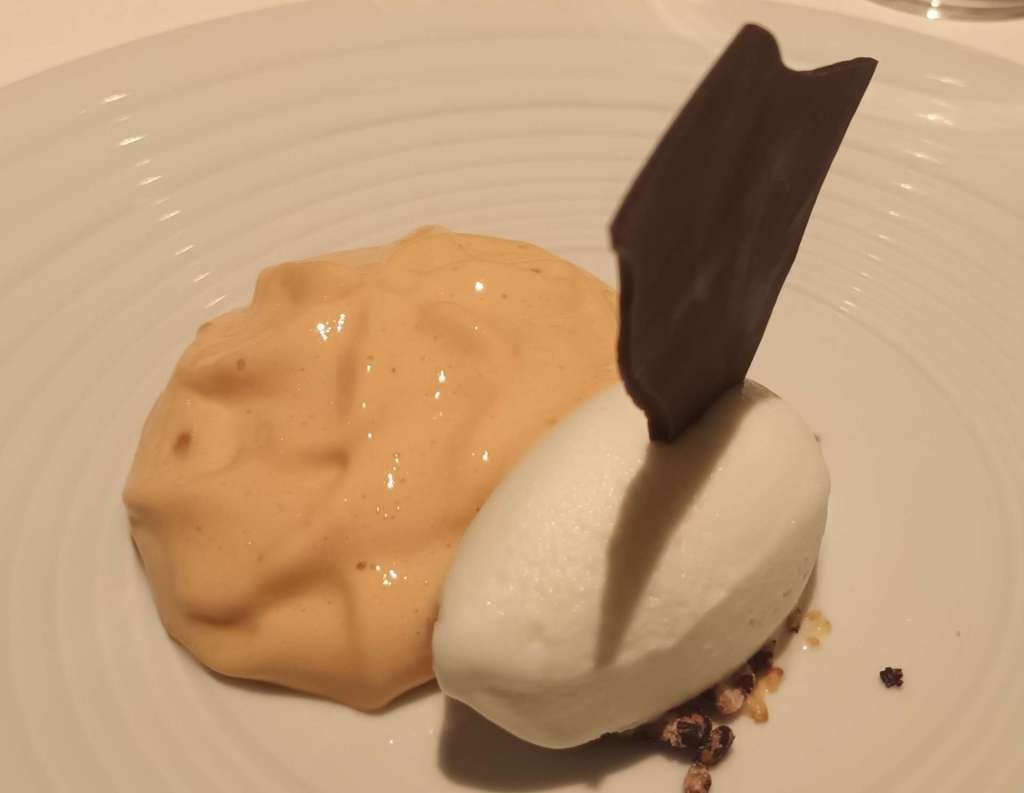 Arroz con leche en diferentes texturas. Como postre y colofón a este exquisito menú, el tradicional arroz con leche en dos texturas acompañado de una lámina de chocolate.