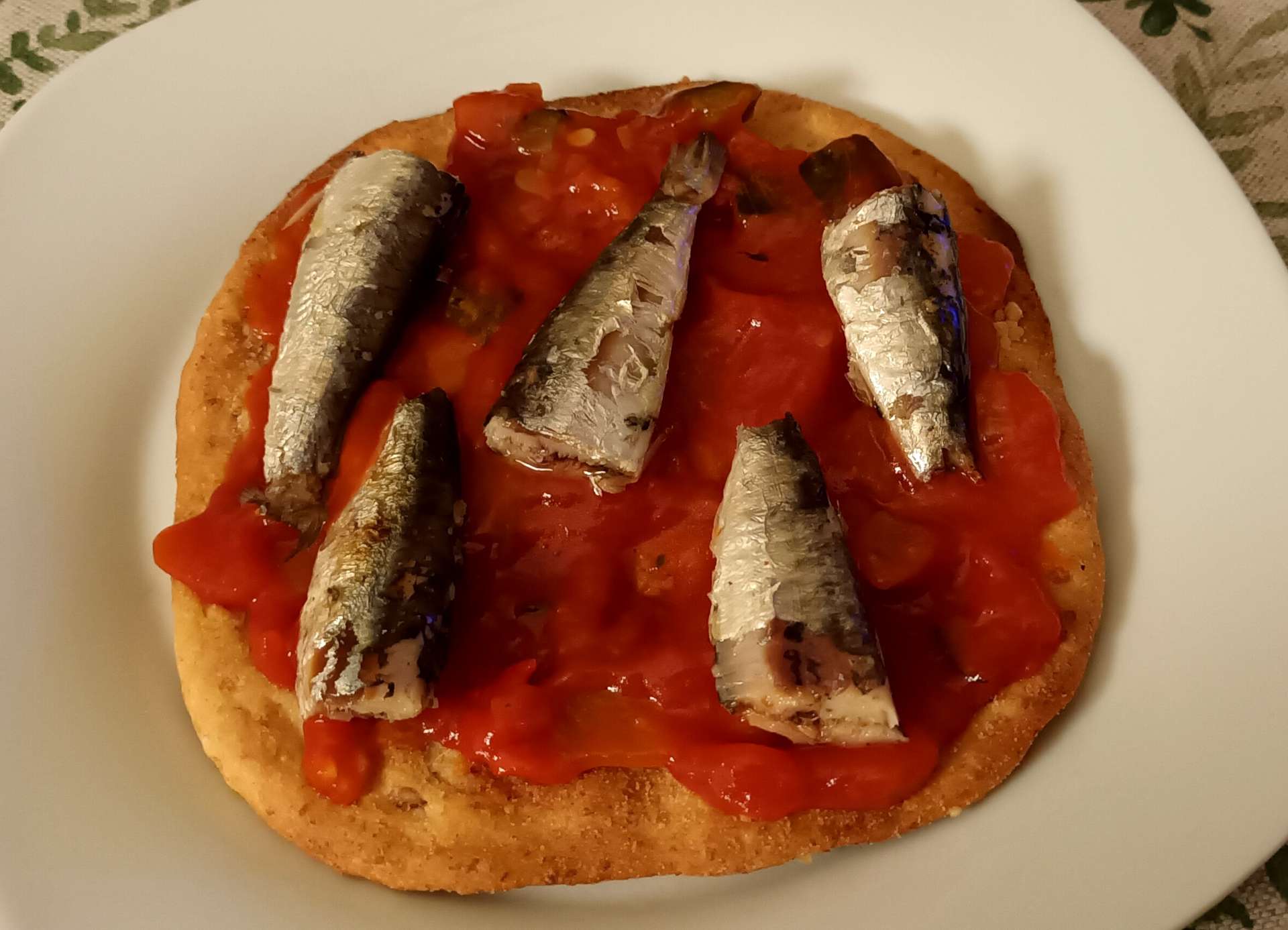 Ponemos las sardinillas encima de la torta con la fritada y listo. Fácil y riquísimo.