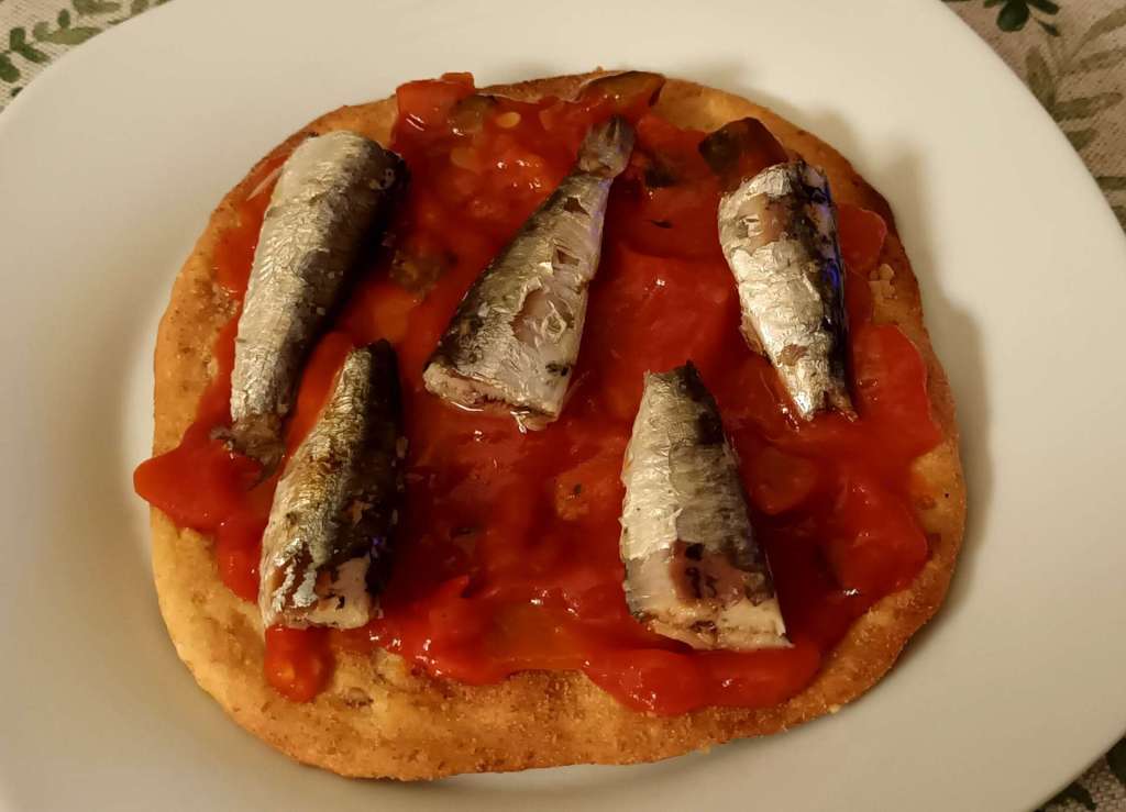 Las tortas de Inés Rosales saladas son estupendas para hacer con ellas aperitivos variados, ya he publicado varias opciones, con sardinas marinadas, usándolas como pizzas individuales y, ahora, con sardinillas en aceite. Las sardinas que he usado son de El Ronqueo, de Barbate, se trata de una sardinillas pequeñitas, de un bocado, que están buenísimas. Cada vez que voy a Barbate las compro, así como otros productos de la misma marca, espectaculares.