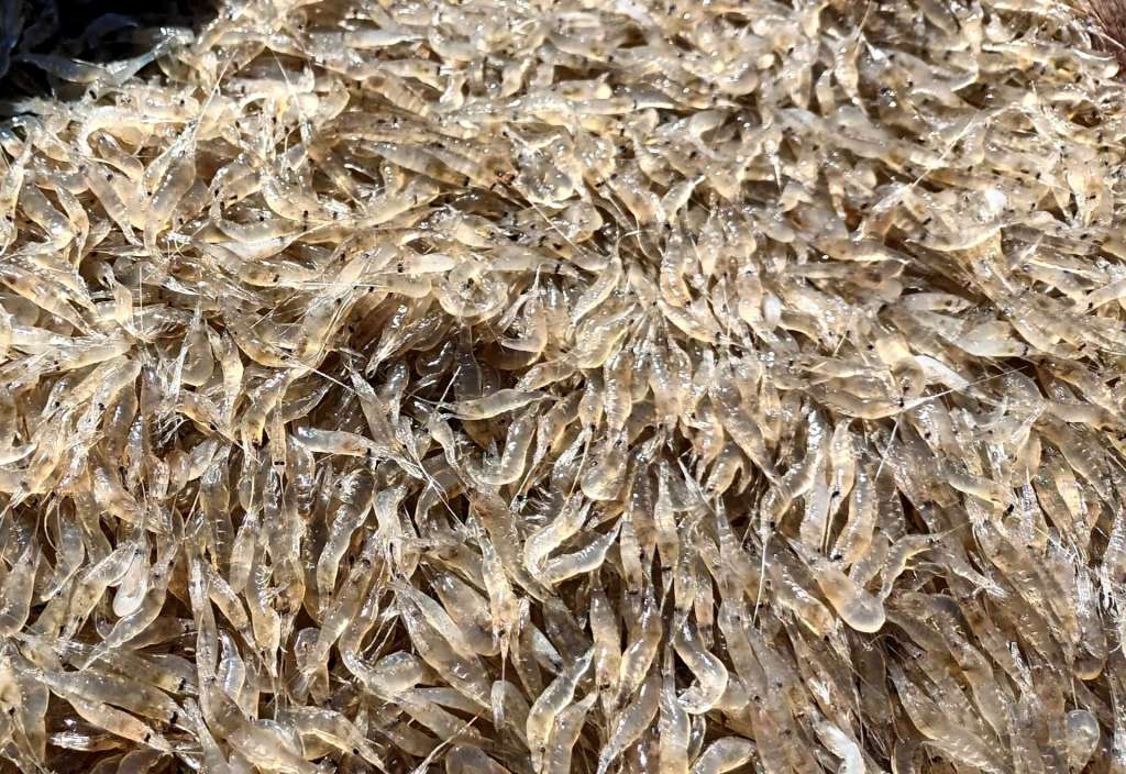 - Un vaso de camarones crudos
