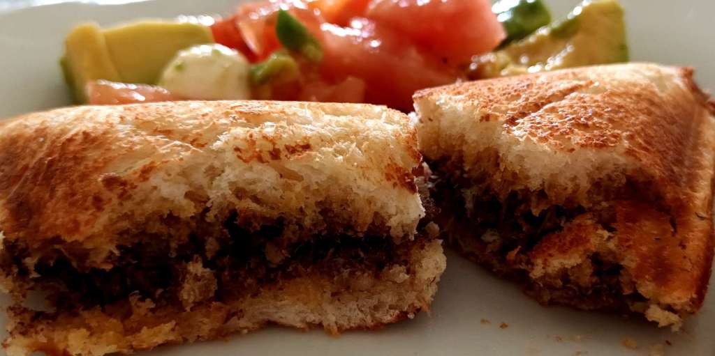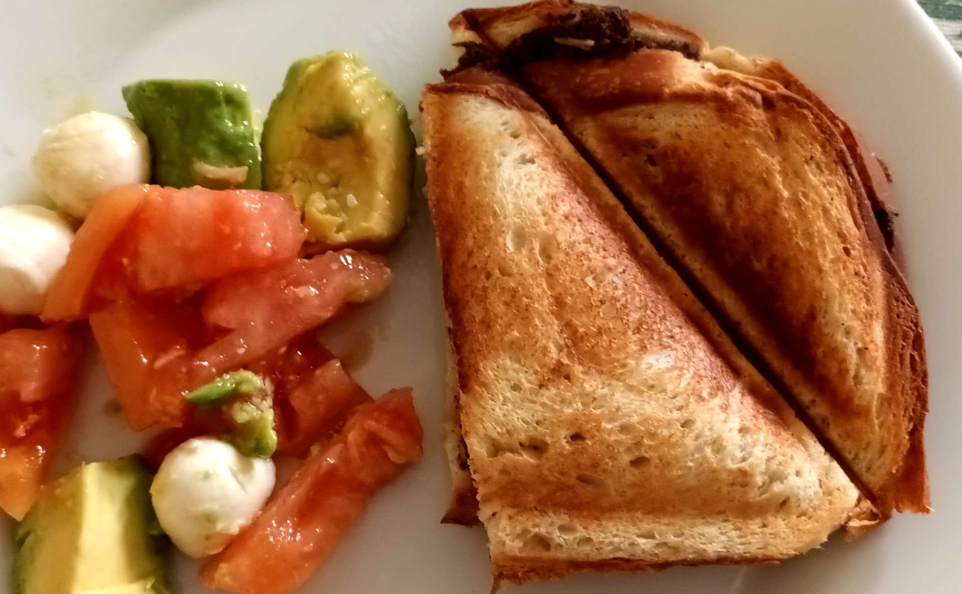 Lo calentamos en una «sandwichera» o en una parrilla, en este caso por ambas caras, hasta que el pan esté dorado.