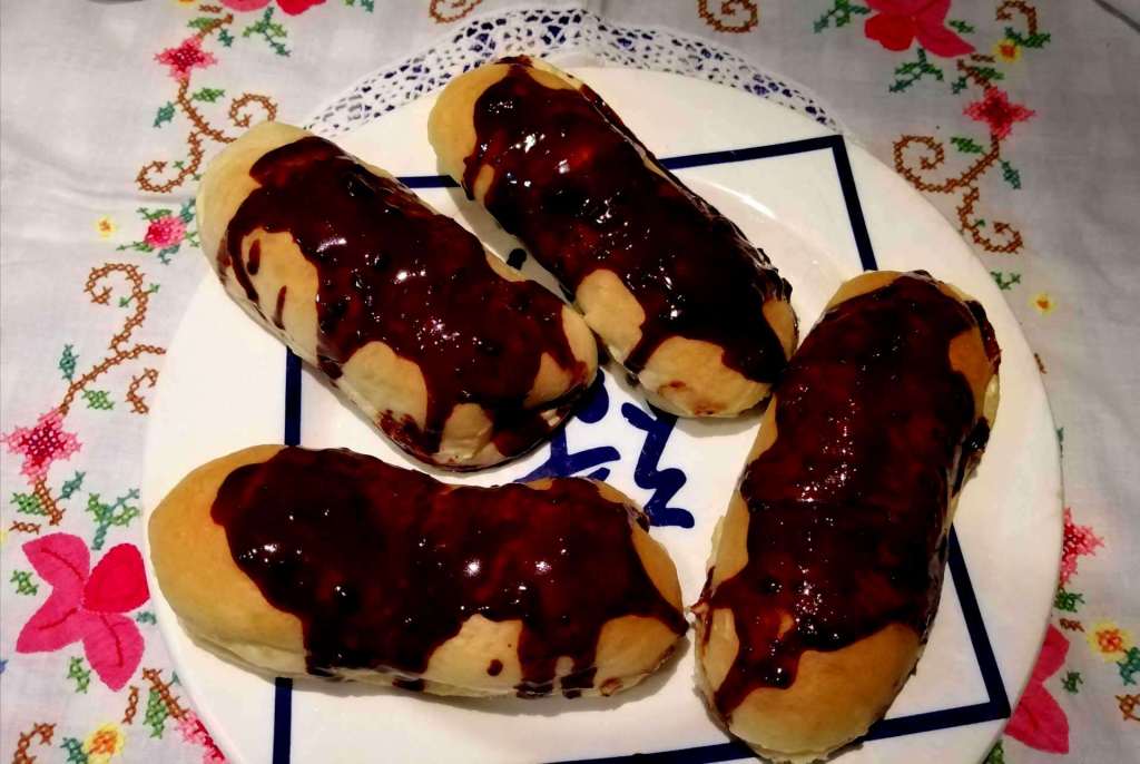 Derretimos el chocolate en un cazo, a fuego lento, y pintamos con él los bollitos. Ya tenemos una merendola de las buenas…Riquísimos.