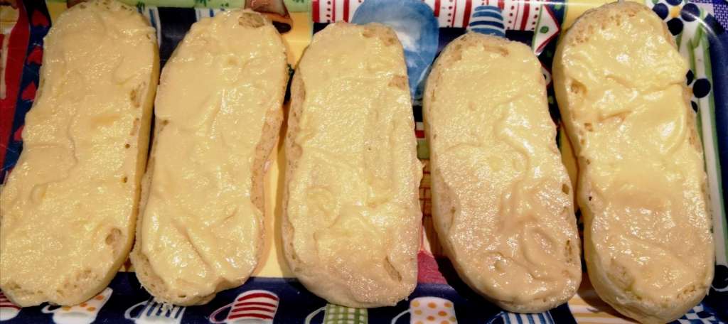 Cortamos los bollitos por la mitad y los rellenamos con la crema.
