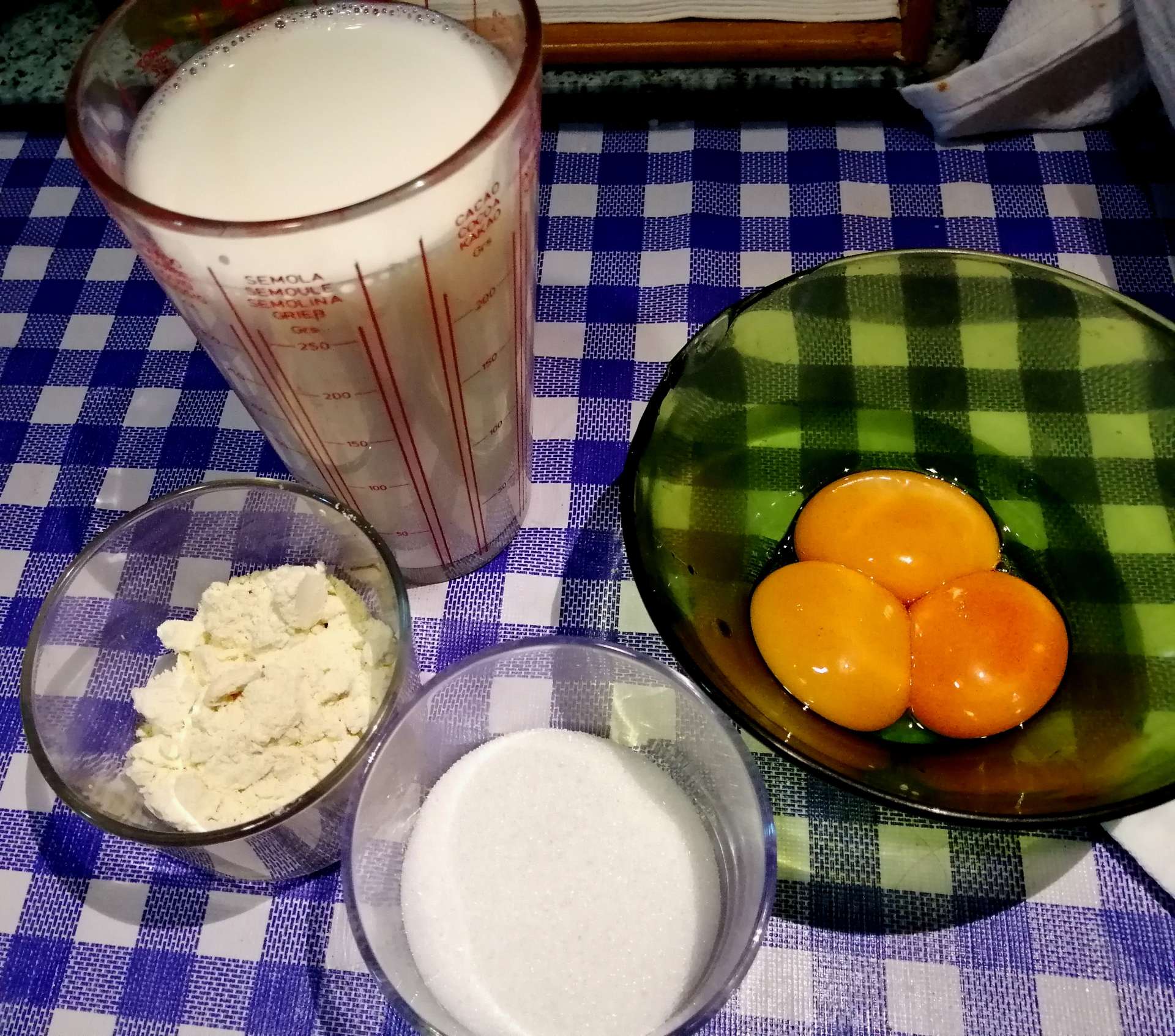 Hacemos la crema pastelera hirviendo la leche con la canela y el limón, pero dejamos aparte 50 cc de leche fría. Cuando hierva la retiramos.