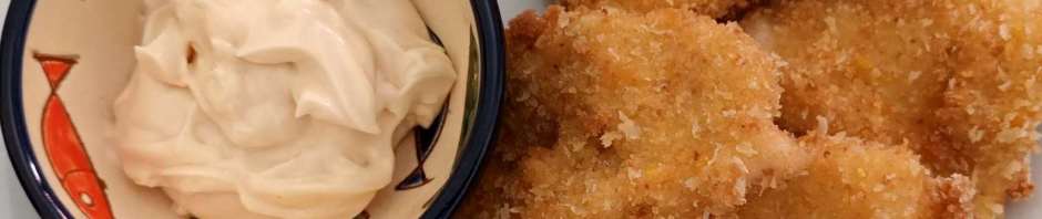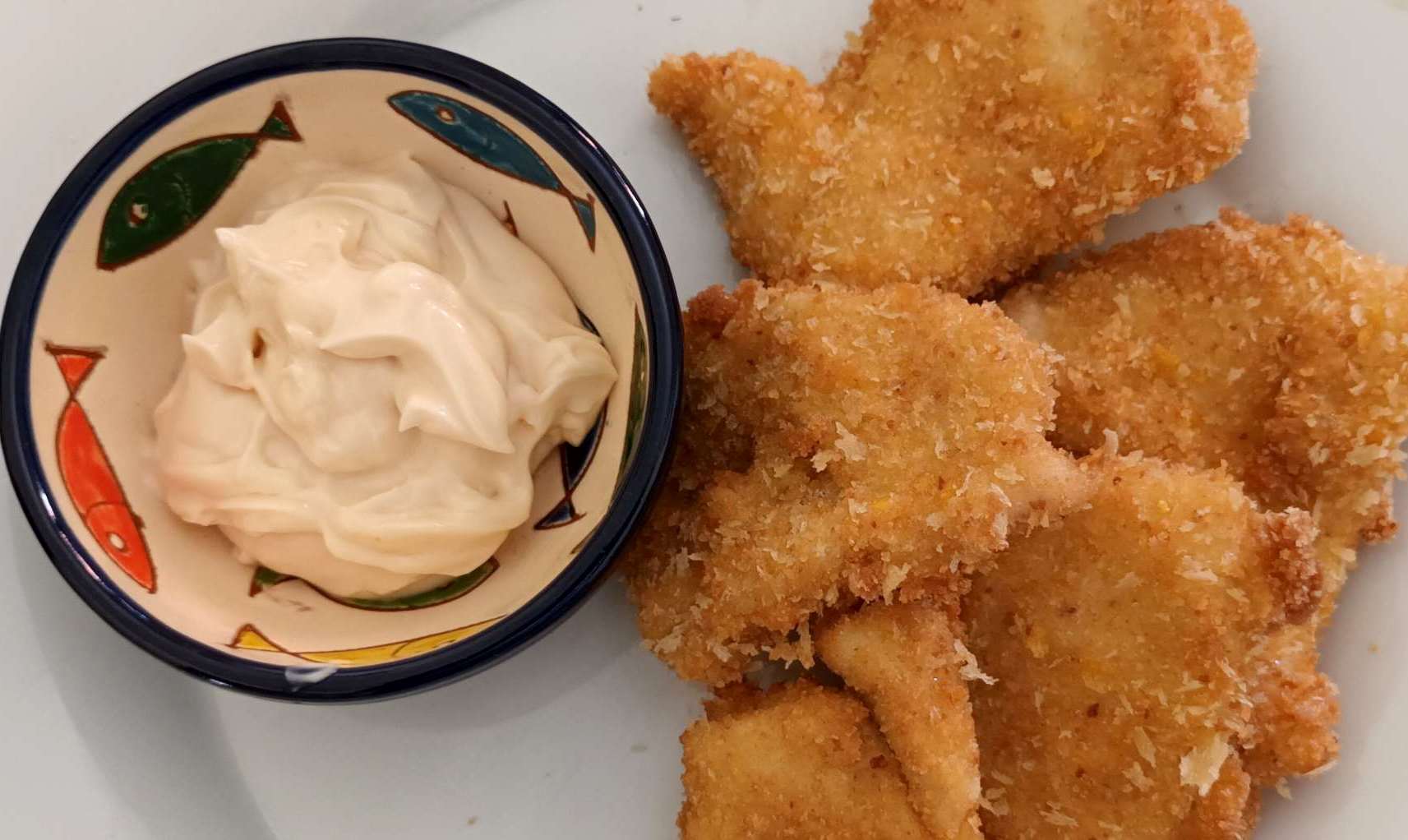 Este pollo empanado con esta mezcla está riquísimo, y acompañado de la mayonesa con soja…para chuparse los dedos. Nunca mejor dicho porque podemos ir cogiendo trocitos con las manos y mojarlos en la mayonesa, y luego…chuparse los dedos.