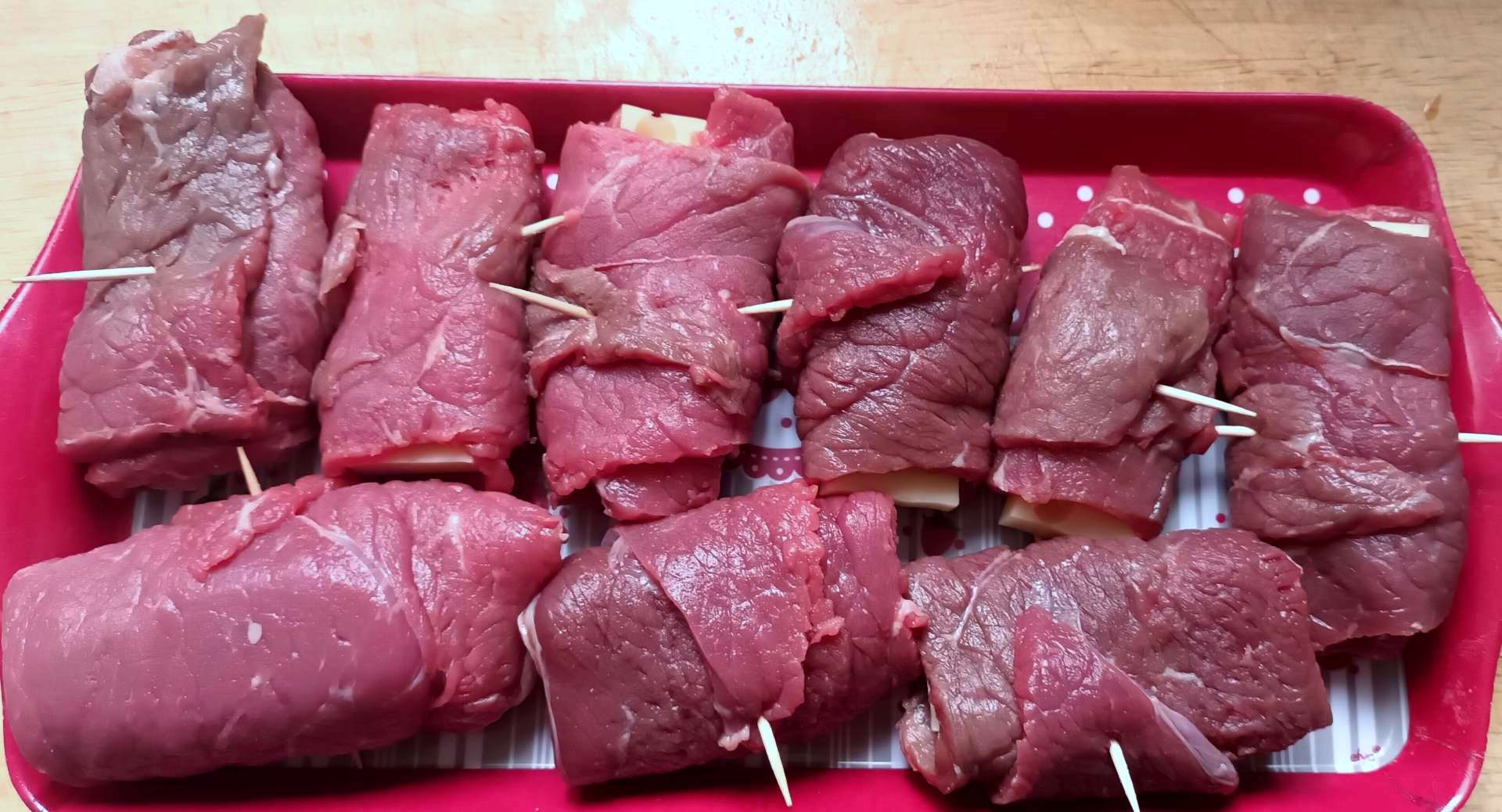 «Ratoncitos» es como llamaban a estos rollitos de ternera rellenos en el ámbito familiar en el que me crie. Se trata de unos rollitos hechos con filetes de ternera que se rellenan de jamón, queso, de huevo duro…Es muy importante que la ternera sea de calidad, en eso no tenemos problema pues la adquiero en la Carnicería Paco Melero de Vejer, donde voy siempre que puedo porque la ternera de la Janda es buenísima.