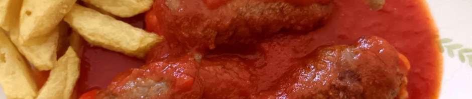 Se pueden hacer con diversas salsas, por ejemplo la de la receta de los rollitos rellenos con huevo duro, que es una salsa oscura de carne, o de tomate, que es la que hemos elegido en esta ocasión. En mi libro «Cádiz en mi cocina» publiqué unos rollitos muy parecidos pero hechos con pollo y pavo, en los apartados dedicados a la Mayetería y a los Navazos respectivamente.