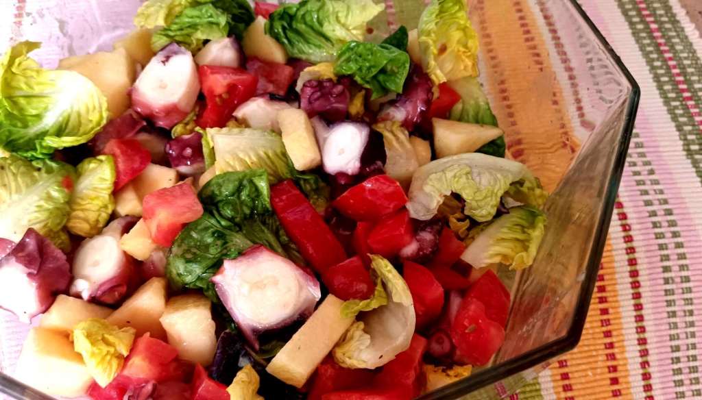 Aliñado en ensalada es una opción estupenda para el verano y épocas calurosas, como la que estamos pasando. Como ocurre con todas las ensaladas podemos añadir una gran variedad de ingredientes, como tomate, lechuga, frutas, cebolla…Pero como ingrediente principal tendremos al pulpo.