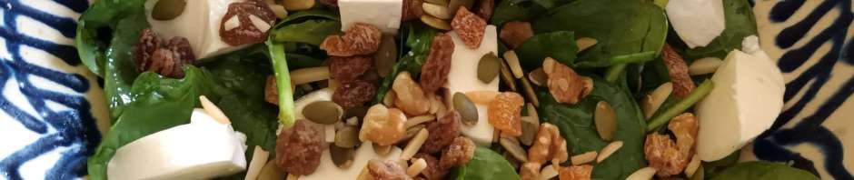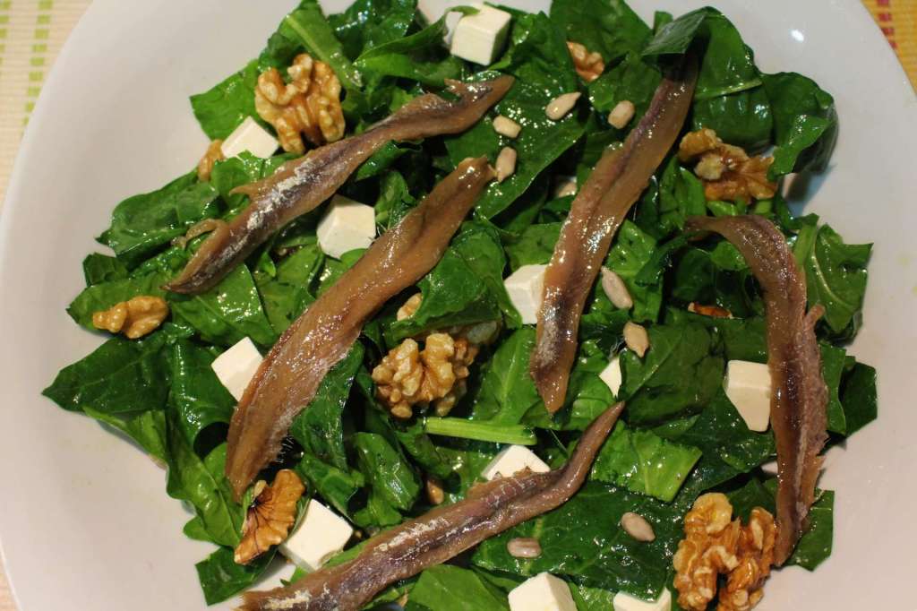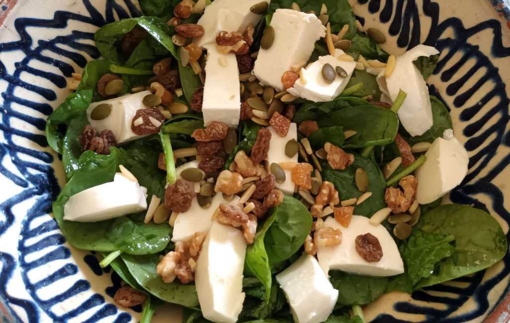 Tienen mucha fibra, vitaminas A y C, antioxidantes, luteína, minerales…y además aportan pocas calorías. Así que, además de los garbanzos con espinacas y las croquetas de espinacas, por poner algún ejemplo, podemos y debemos tomarlas crudas, en ensaladas variadas. Algunas recetas de ensaladas con este verde producto tenemos ya en este blog, aquí pongo algunas más con ingredientes variados para dar algunas ideas, aunque ya sabemos que a una ensalada se le pueden añadir muchos productos, es cuestión de ver qué tenemos en la despensa y en el frigorífico y aliñar bien…