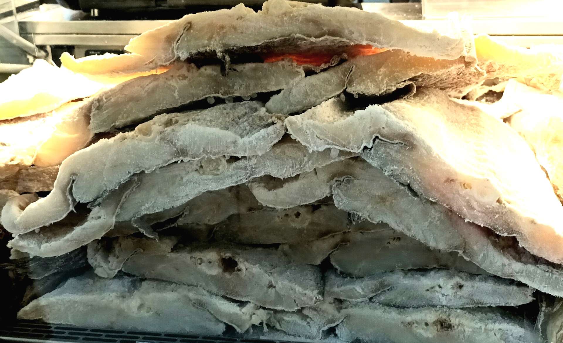 El bacalao o bacalhau, es uno de los platos más populares y conocidos, se pone a secar al sol y se sala para conservarlo. Cuando se vaya a cocinar se deja en remojo algunas horas para eliminar el exceso de sal.