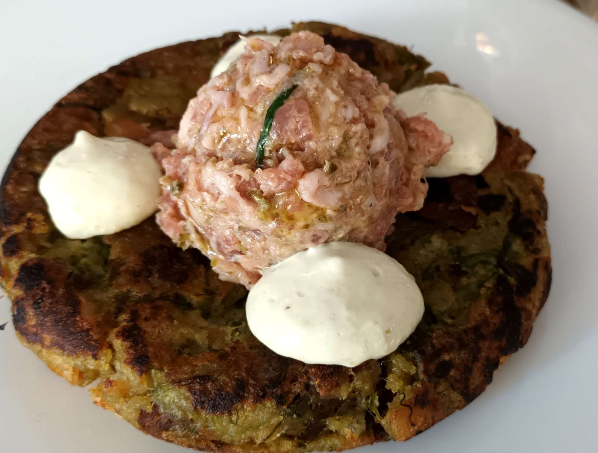 Muy buena pinta todo Lola,un menú contundente,habrá que ir a probarlo,yo dejaré un buen hueco para el postre las gachas-poleas me encantan y el tartar de salchichon tiene que saber a eso,enhorabuena por tu «amadrinamiento»,nos vemos……..