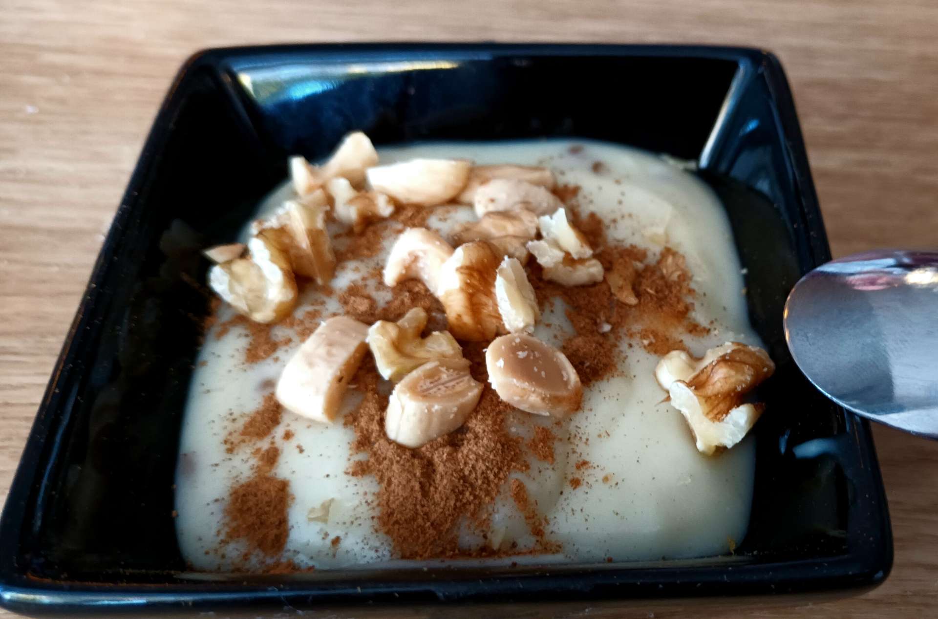 Las que hemos tomado como postre llevan harina, leche, canela, almendras y nueces picadas. El vino elegido para tomar como colofón ha sido Eva Cream, elaborado con oloroso y Pedro Ximénez.