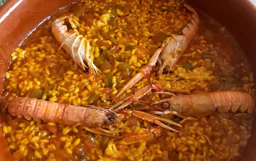 Por último añadimos el arroz y las cigalitas crudas peladas. Vamos viendo que se vaya poniendo tierno y, si es necesario, añadimos un poco más de caldo de pescado o agua. Rectificamos de sal. Lo dejamos más o menos caldoso según nos guste. Ponemos encima las cigalas cocidas para decorar…y para comerlas, que están buenísimas.