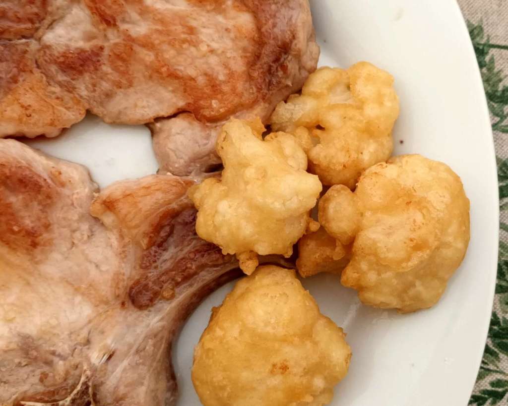 Ponemos a calentar aceite y, cuando esté bien caliente, vamos pasando los ramitos de coliflor por la tempura y los vamos friendo. Los escurrimos y listo. estarán dorados y crujientes, excelente acompañamiento a unas chuletas, un pollo, unos filetes…O para tomarlos solos…