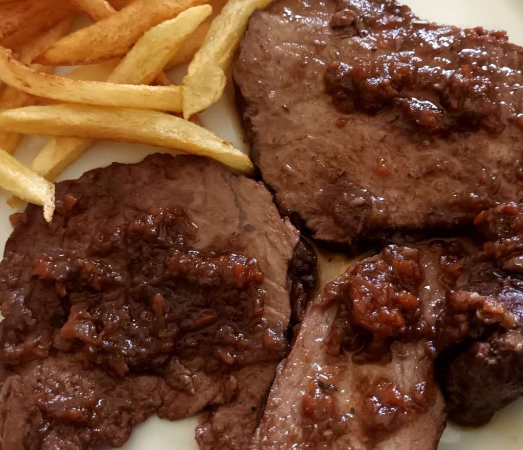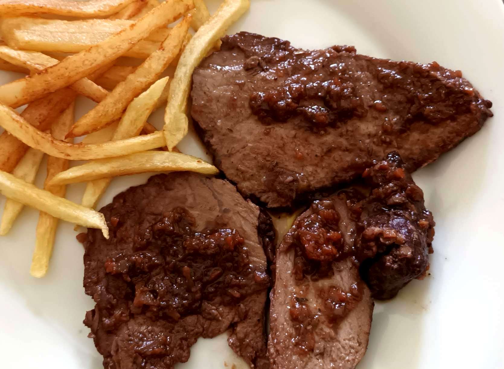 Pues hace unos meses visitamos la ciudad de Oporto y compramos algunas botellas de este rico vino que, además de tomarnos una copita de vez en cuando, también lo he usado para cocinar algunos platos, como este solomillo que estaba riquísimo. Se trata de lo que en la Carnicería de Paco Melero llaman falso solomillo, una parte de la cadera que tiene forma de solomillo y que es buenísimo y más barato.