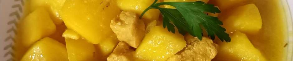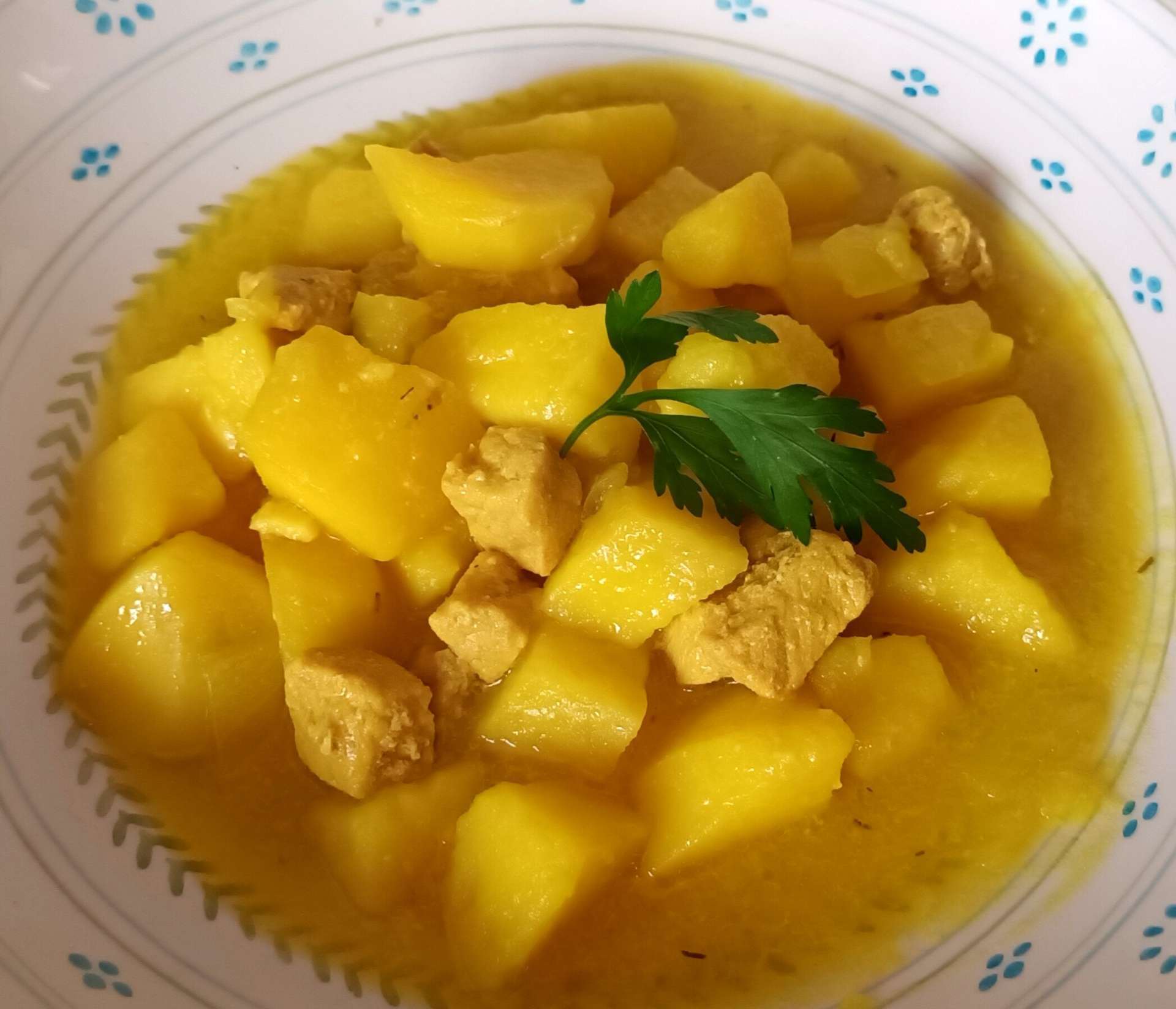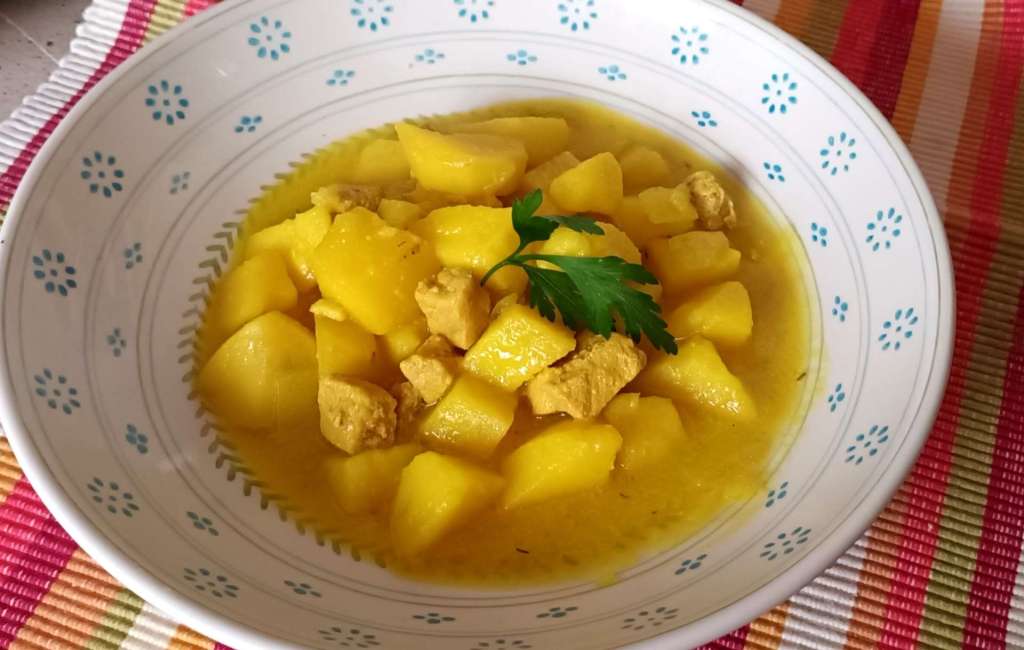 Así las llamaba mi madre, de quien aprendí la receta, aludiendo al color que le da el azafrán. Es un plato sencillo y, a la vez, sabroso. Yo diría que con dos versiones, la pobre y la rica, la primera sin carne y la segunda con ella. Como las patatas «aliñás«, de las que hay una versión rica, con atún y huevo duro, y otra pobre solo con cebolla. Ambas riquísimas.