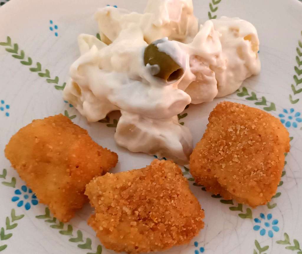 Con la mezcla hacemos pequeños rectángulos o cuadraditos y los empanamos. Los pasamos por pan rallado, huevo batido y, de nuevo, pan rallado. Si al pan rallado añadimos panko estarán más crujientes.