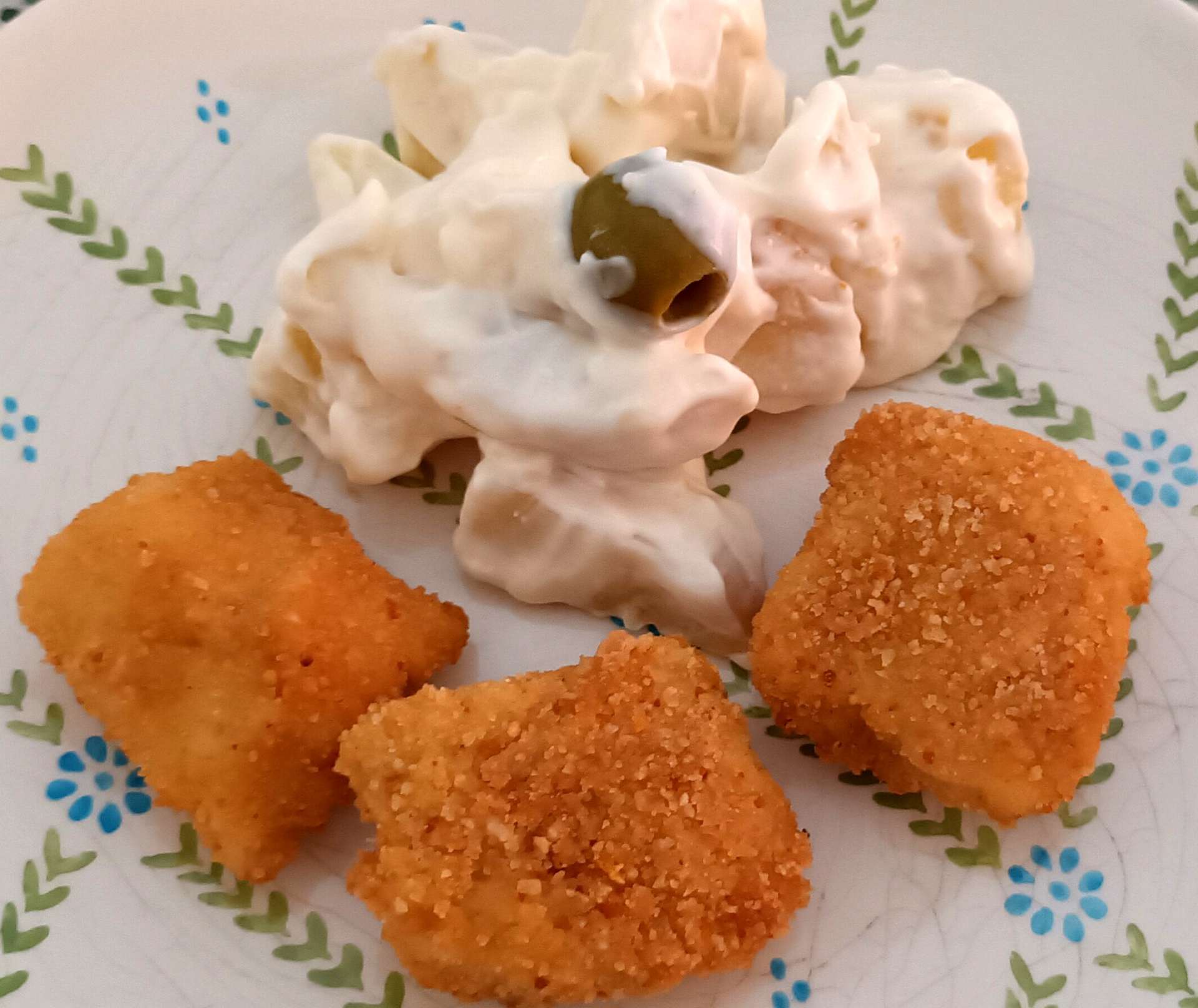 Los nuggets tienen una apariencia muy parecida a las lagrimitas de pollo, pero en el caso de los primeros el pollo se tritura. Ya publiqué anteriormente una receta de nuggets, pero he conocido una variante y he decidido probarla. Es igual de fácil pero con un toque diferente. La traducción de nugget es pepita, trocito…y eso es en realidad…trocitos de pollo.