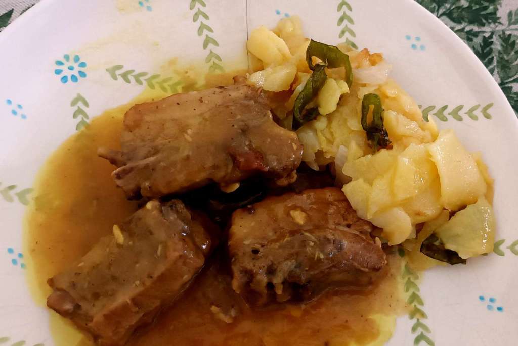 El resultado es espectacular, unas costillas riquísimas que podemos acompañar, como en este caso he hecho, con patatas a lo pobre.