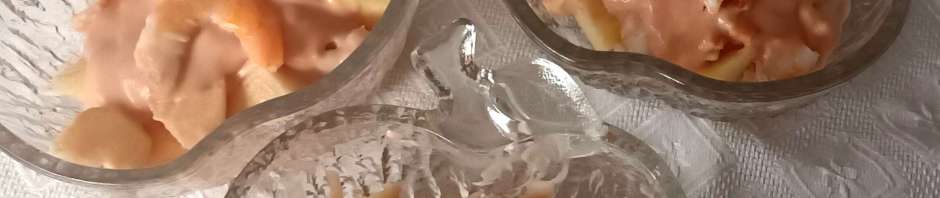 Ya tengo publicada la receta del tradicional, el cóctel de marisco de toda la vida, pero aquí va otra opción, diferente, con trocitos de manzana, que también está riquísima.