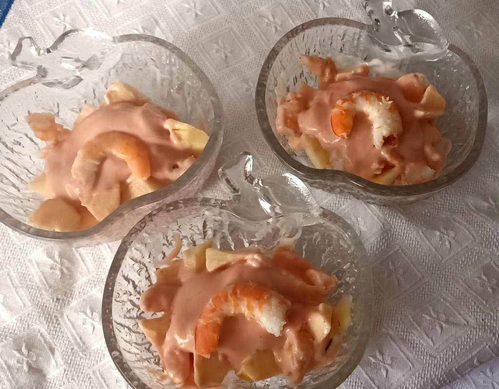 El cóctel de marisco es un plato clásico que se tomaba con mucha frecuencia hace años. En las comidas de Navidad u otras celebraciones estaba presente como entrante. En los bares formaba parte de la carta de tapas. Pero le llegó su etapa de decadencia y dejó de estar entre las opciones a tomar tanto en las casas como en los bares y restaurantes. Pero ha vuelto, aunque no con mucha fuerza, la verdad. de todas formas en casa nos gusta mucho y los demás pueden tomarlo o no, los bares pueden ofrecerlo o no…yo lo sigo haciendo porque está muy rico, es fácil de elaborar y para el verano es muy fresquito.