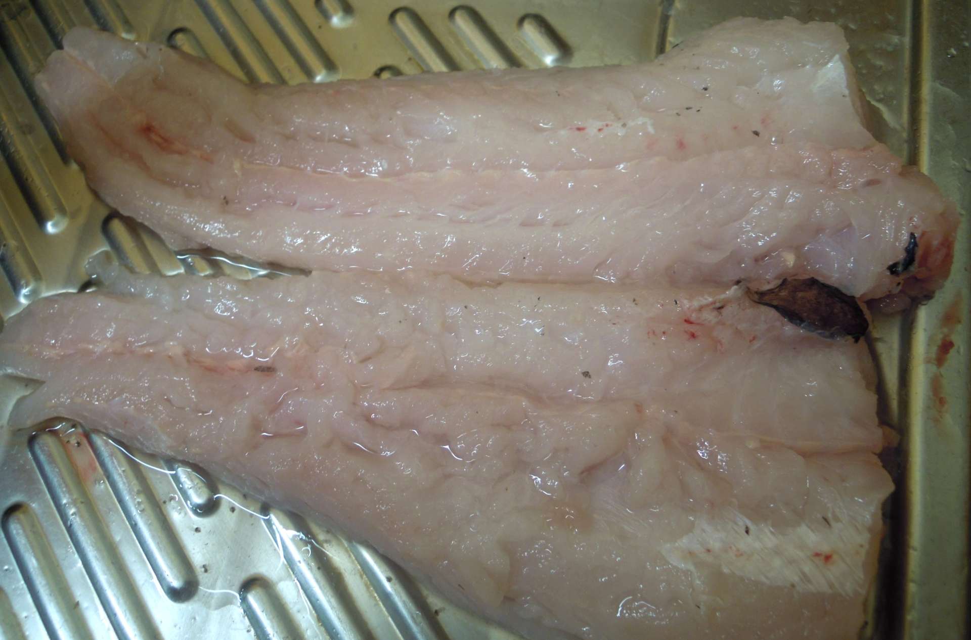 Cortamos el lomo de merluza en dados de tamaño mediano. Los salamos.