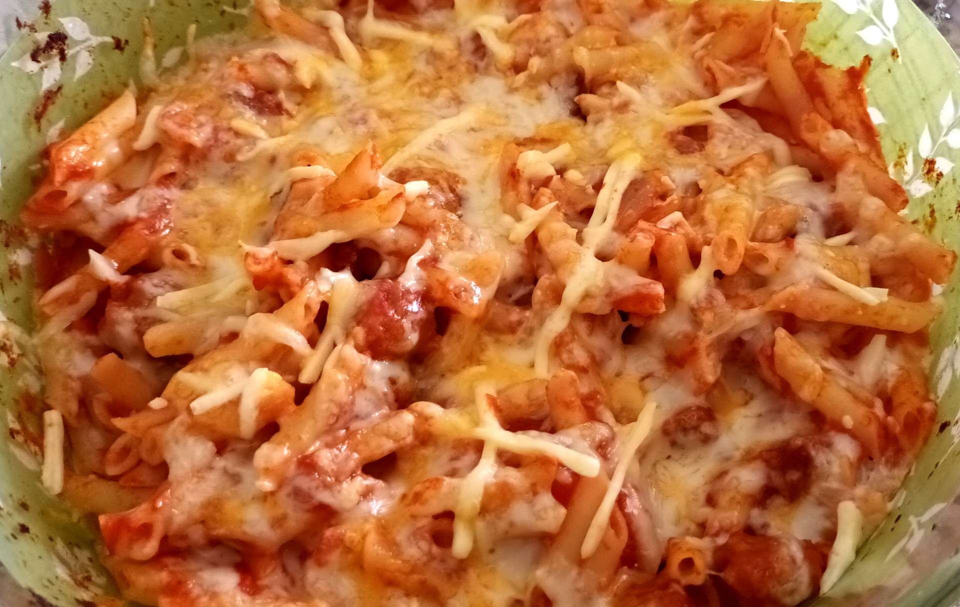 Cocemos la pasta y la colamos para que quede sin agua. Mezclamos bien con la salsa y la ponemos en una fuente apta para horno. Echamos por encima queso rallado y metemos los macarrones en el horno precalentado a 180º.