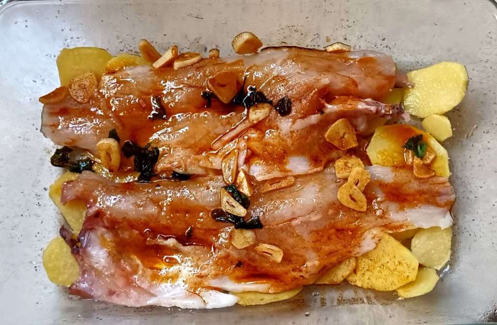 Se puede preparar de múltiples formas, por ejemplo al horno, como la dorada. En esta ocasión le hemos sacado los lomos y la hemos hecho al horno pero de manera algo diferente.
