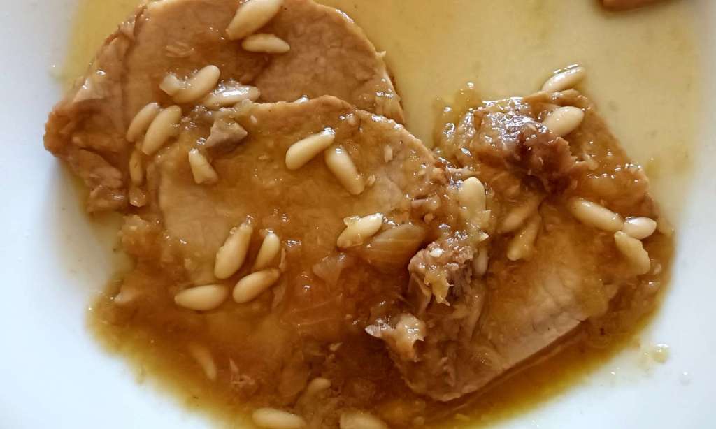 Una buena cinta de lomo es ideal para hacerla con salsa y luego, cortada en rodajas, tomarla con cualquier acompañamiento. Si es tierna…siempre resulta buena. Ya he publicado varias recetas con esta pieza del cerdo tan rica, hoy traigo una nueva…con manzana, piñones y vinos variados.