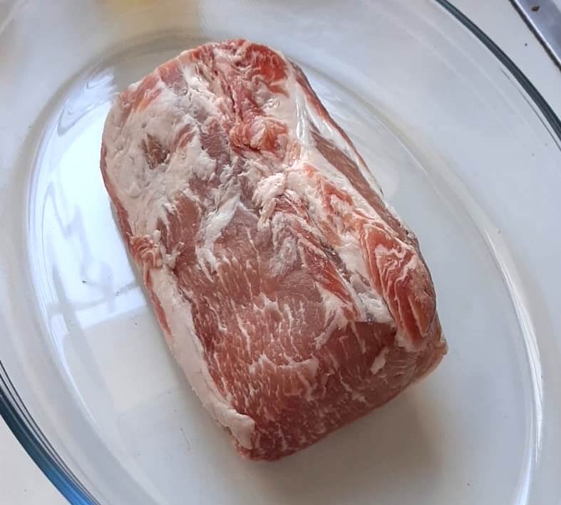 Añadimos agua y lo ponemos a hacer unos 15 minutos desde que empieza a salir el vapor. Cuando abramos la olla vemos si el lomo está tierno pinchándolo. Si es así lo sacamos y reservamos.