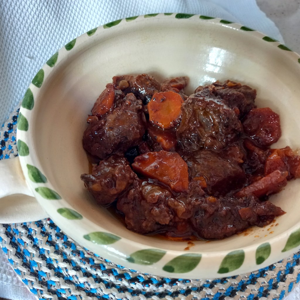 Son varias las recetas de carrillada que he publicado en este blog, con Tintilla de Rota, con cerveza, con vino tinto…porque una buena salsa para este guiso de carne requiere un buen vino. Y en nuestra última visita a Barbate hicimos una visita a Bodeguita Almabrazo, donde venden unos vinos a granel de excelente calidad, así como su vermut. Si voy a Barbate me gusta acercarme a esta singular bodega donde Juan, Jesús, Miriam, Inma… siempre atienden con cariño y hacen que la estancia sea muy agradable. Para acompañar los vinitos ponen unas tapas de atún o embutidos que quitan el hipo.