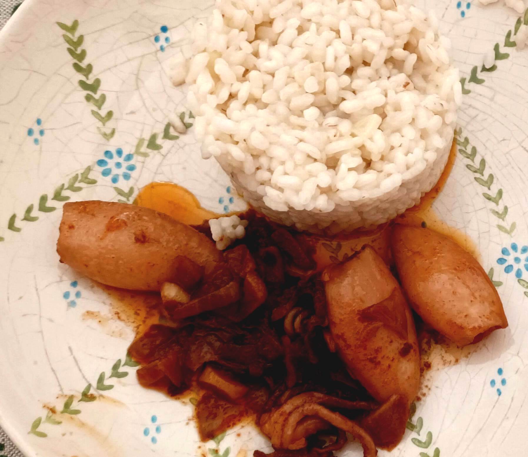 Por último agua que cubra las patatas con el chorizo y las ponemos a cocer hasta que esté todo tierno y la salsa espesita. Buenísimo.