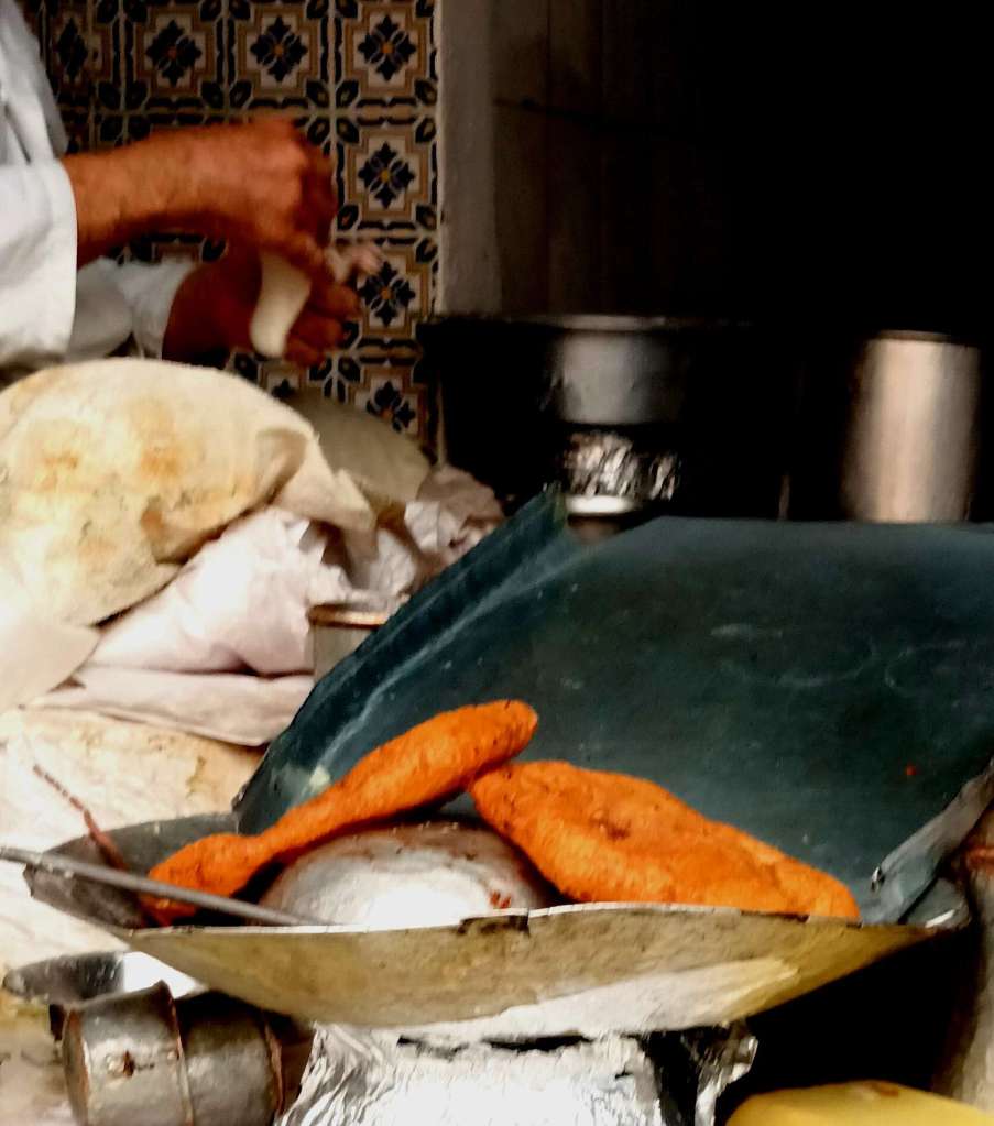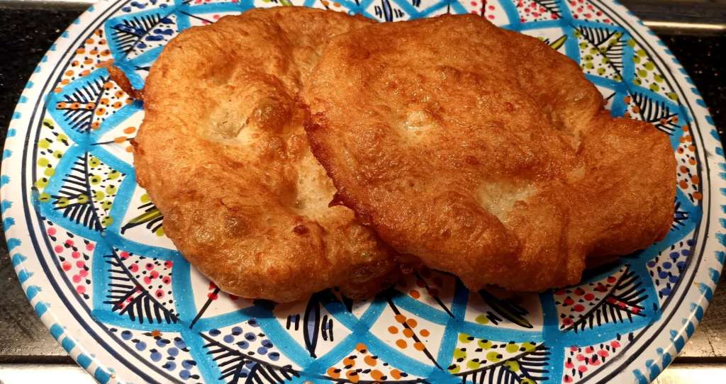 La masa del bambalouni es muy parecida a la de nuestros churros, harina y agua, y, como nuestros churros, también se fríen, y se les echa por encima azúcar o miel. Deliciosos.