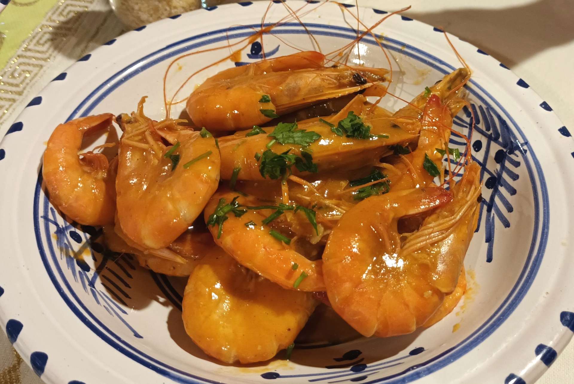 Las gambas y langostinos son muy ricos y jugosos y los preparan, además de a la plancha, con una salsa que lleva como base el tomate muy rica y sabrosa.
