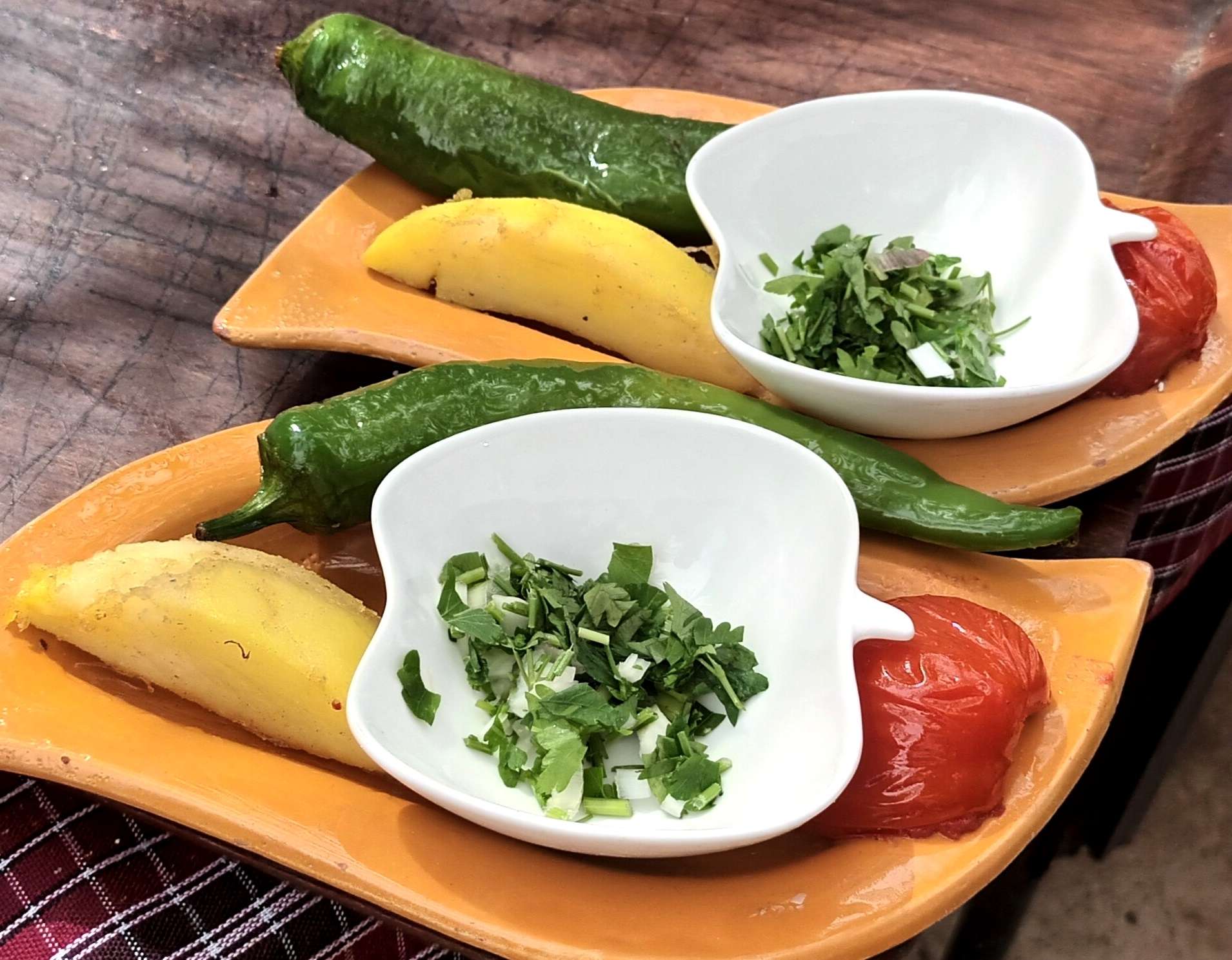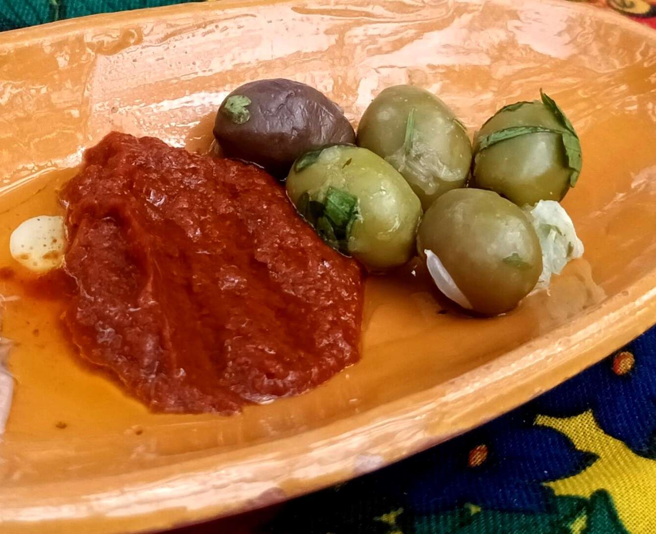 Algo habitual en casi todas las comidas, ya sea a mediodía o por la noche, son los entrantes, que son como nuestros aperitivos, los ponen en las mesas para tomar mientras llegan los platos principales. Entre ellos no suele faltar la salsa picante de pimientos.