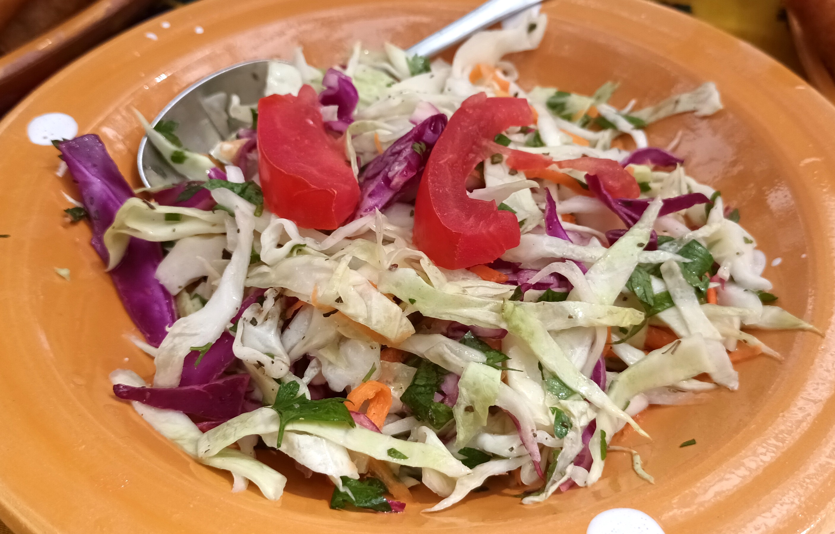 Las verduras crudas son presentadas en ensaladas, con las que hay que tener cuidado según el sitio donde se tomen, siempre en lugares limpios e higiénicos.